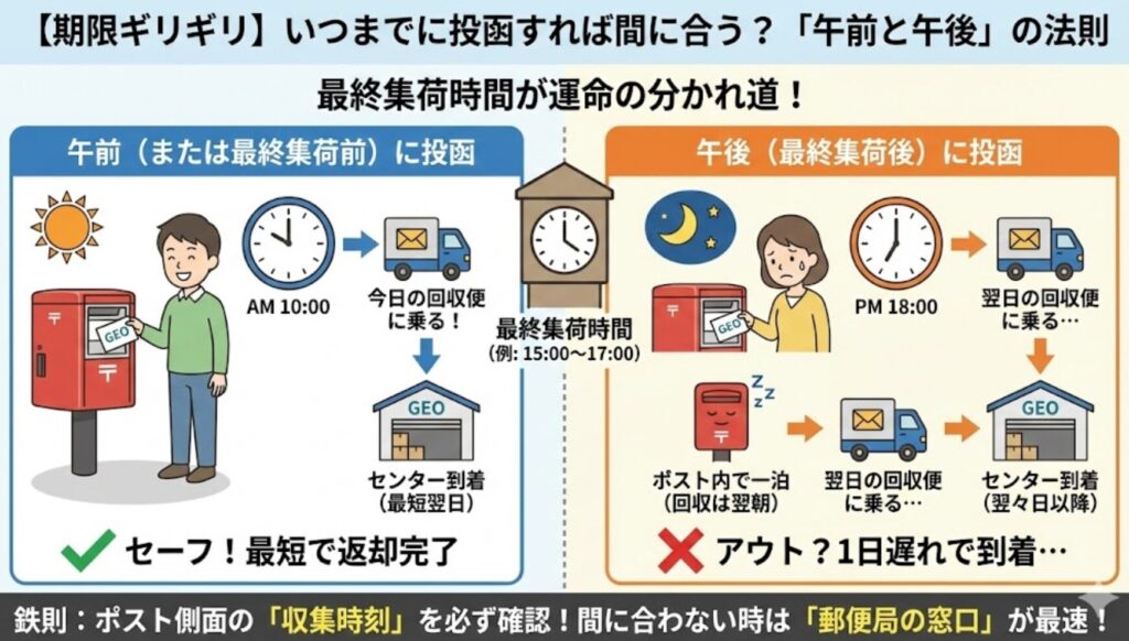 今回は、元店長の私が、皆さんが一番知りたい「いつまでに投函すればセーフなのか」というボーダーラインと、「ポストに入らない時の緊急対処法」を解説します。