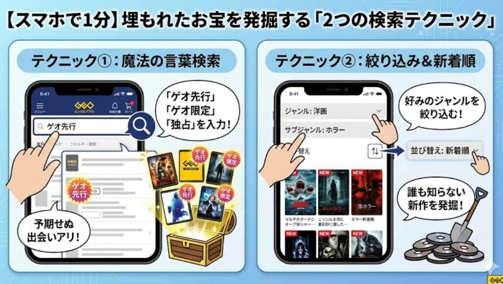 今回は、そんな激レア作品をスマホで一発で探し出す「検索テクニック」を伝授します。 これを知れば、もう週末の作品選びで迷子になることはありませんよ!